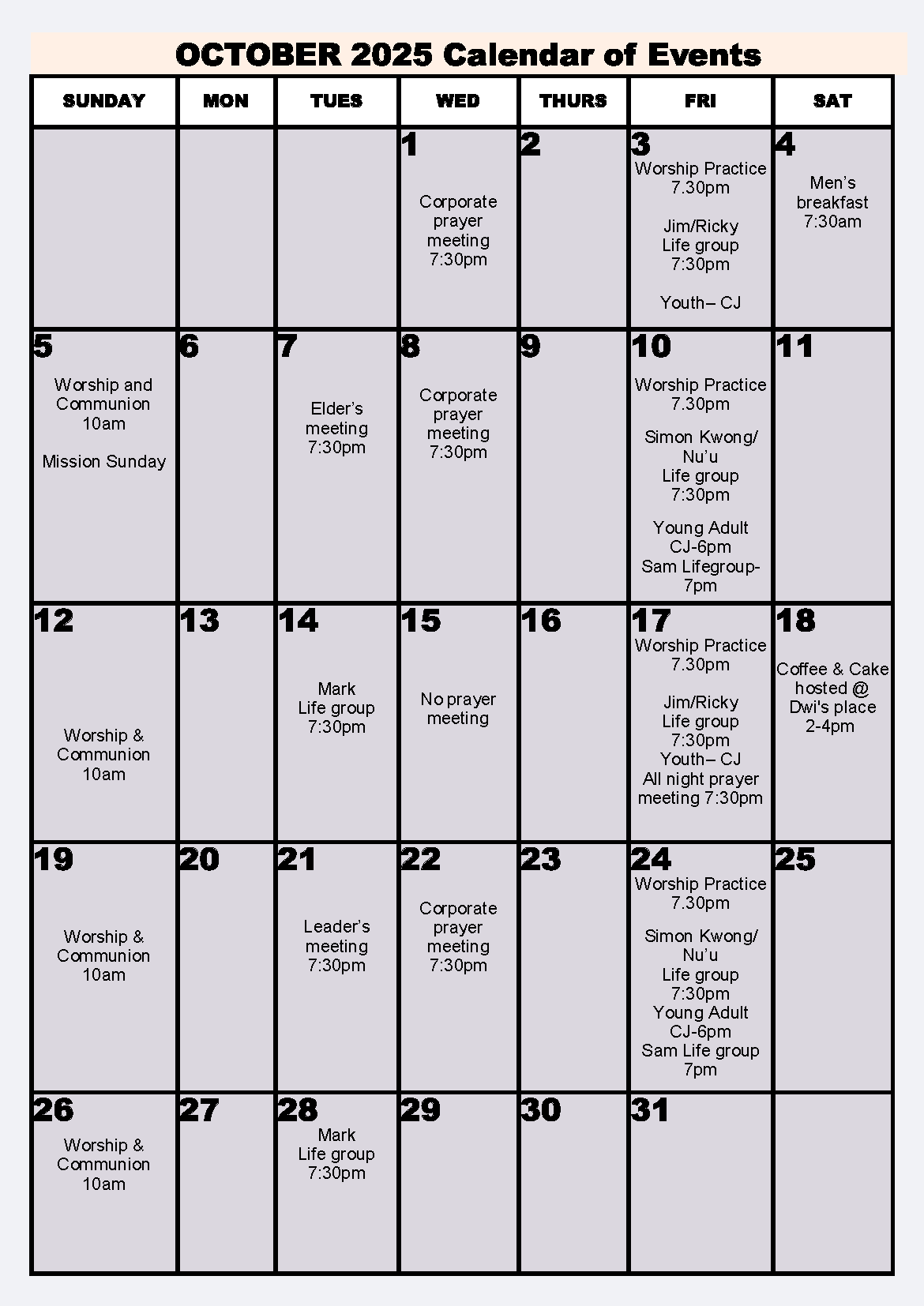 *No Wednesday prayer this week